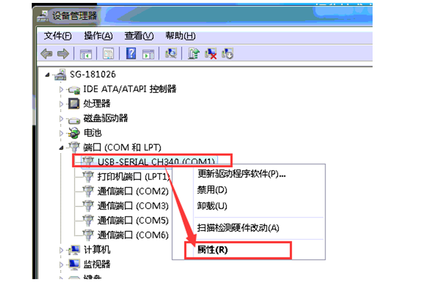 2.安装完成后,设备管理会出来一个CH340的设备