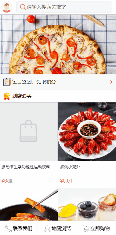说明:每日签到页面“到店必买”显示的商品,一共显示8个,系统优先显示商品销量比较多的商品,若没有商品销量,则显示商家在后台设置的“自定义热卖”商品;