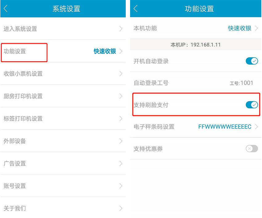 1)使用前【软件前台—系统设置—功能设置-微信刷脸支付】请记得开启