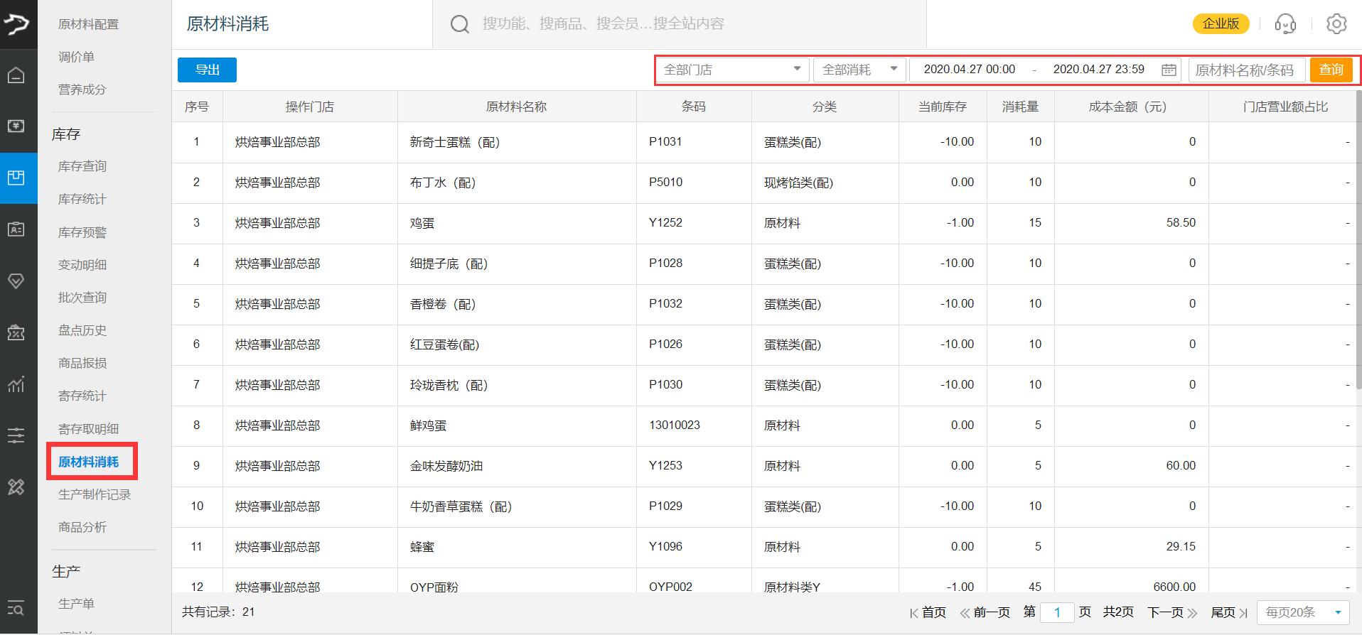 银豹云端支持生产功能,适用于烘焙行业有生产操作的商户。