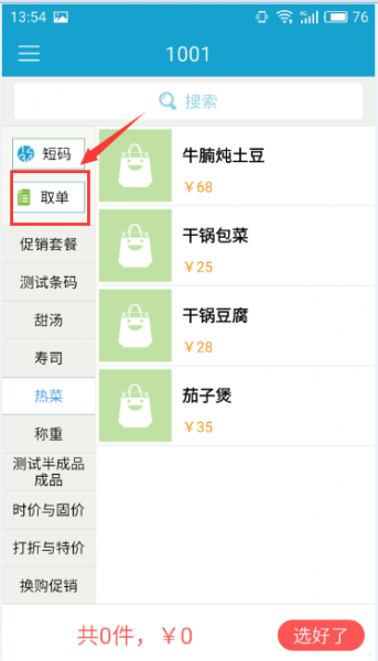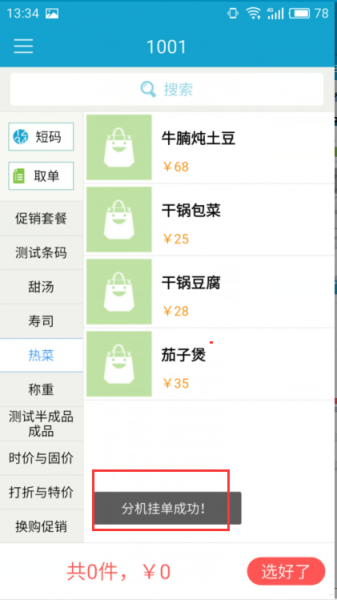 4. 点菜,点击选好了,并挂单到主机: