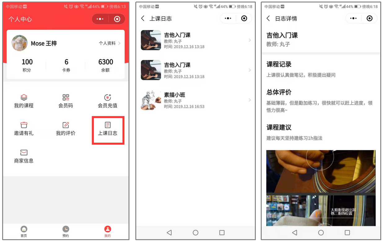 学员可点击,我的-【上课日志】查看教师的授课日志,对学员的评价、建议;