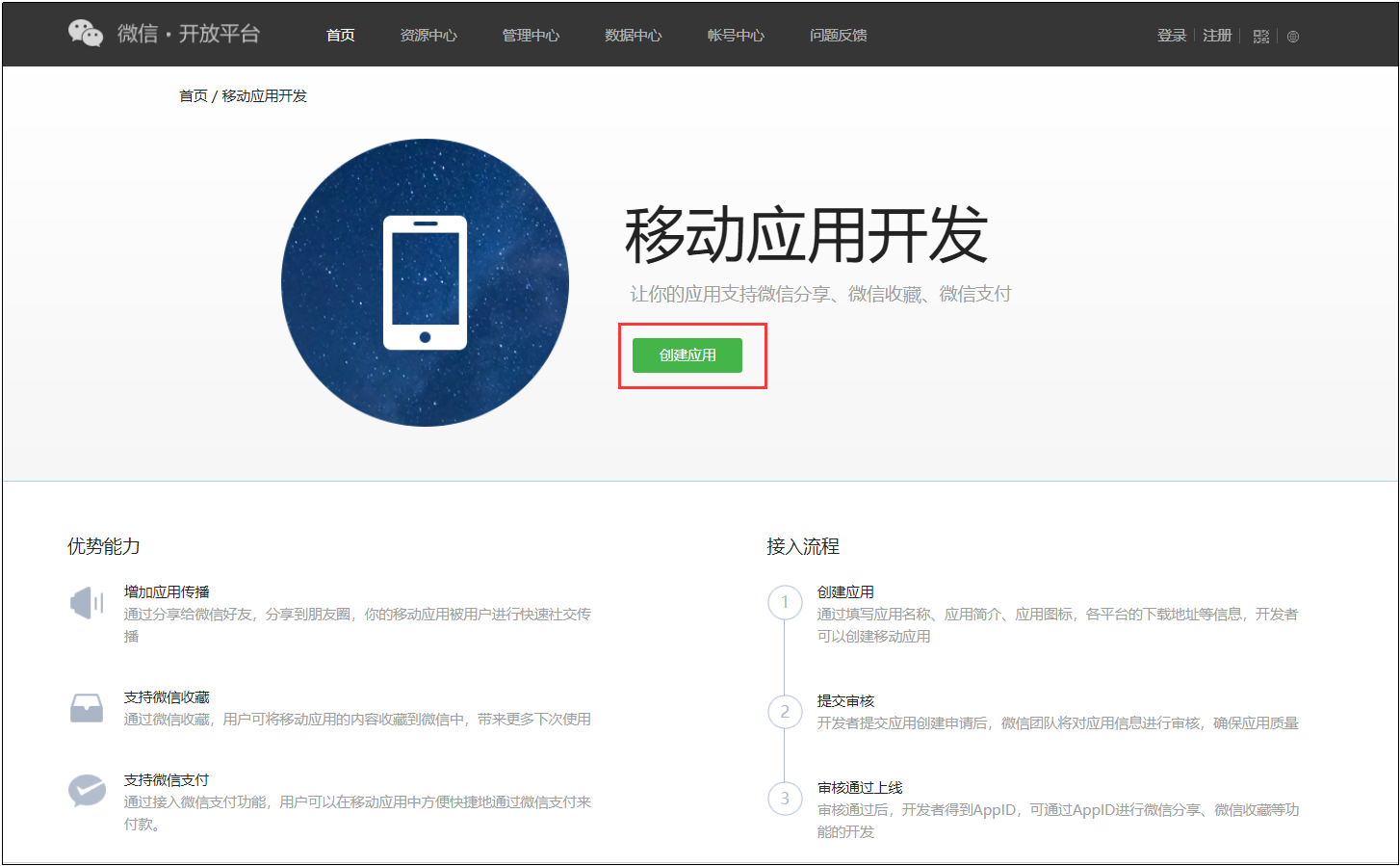 创建移动应用,获取移动应用AppID