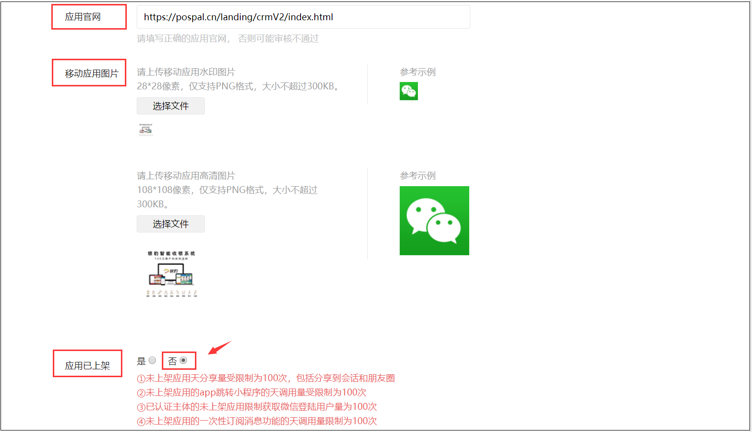 应用已上架:选“否”