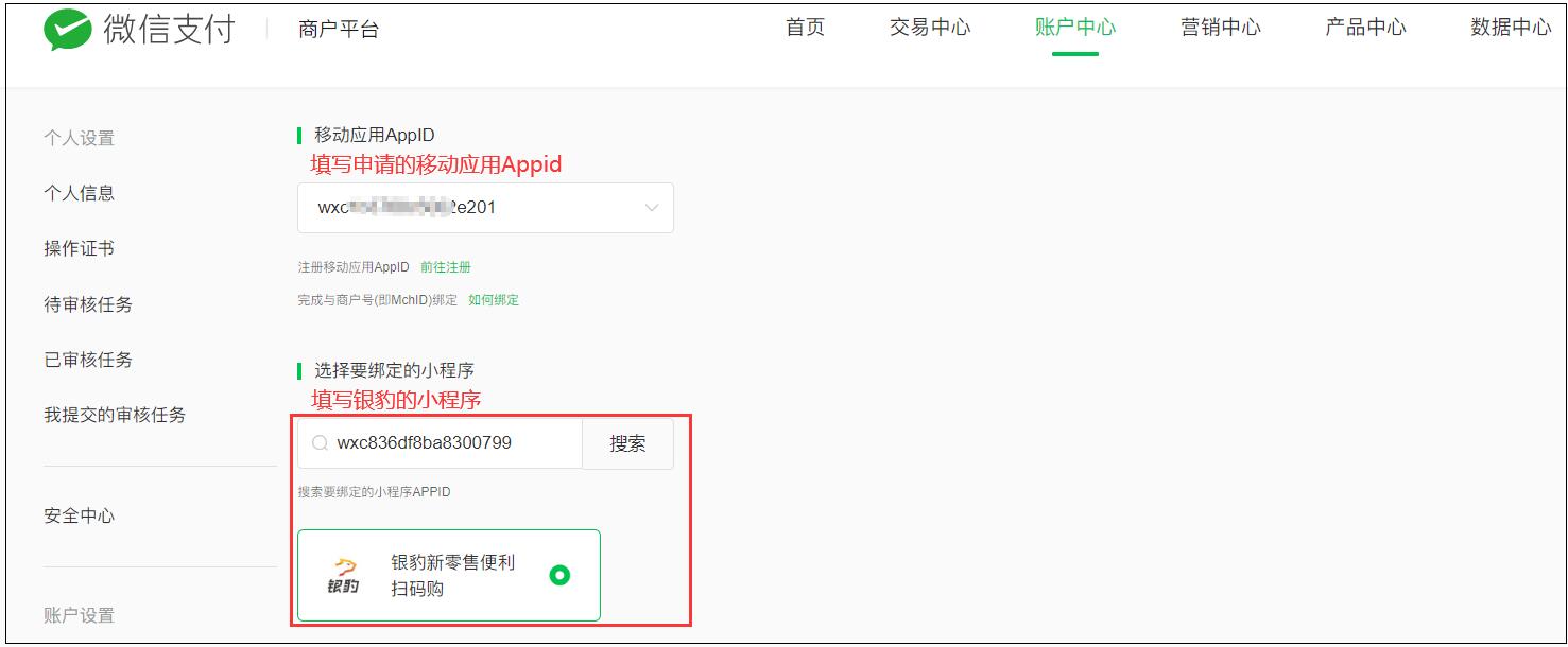 注意:商家的微信商户号必须开通“APP支付权限”,才能关联移动应用 AppID;