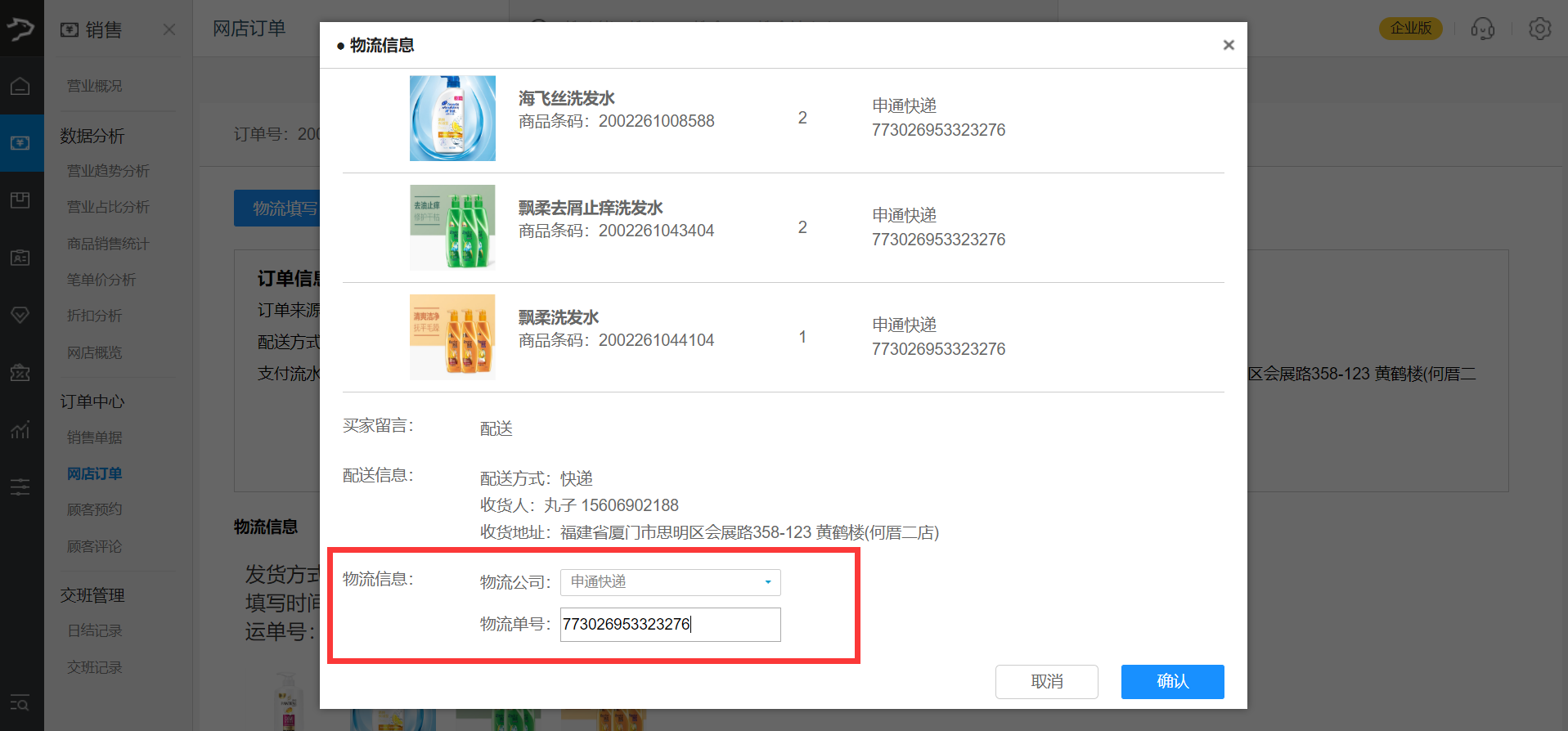 在当前时代下物流配送各行业都有需求,银豹没必要限制行业开通物流配送模块。