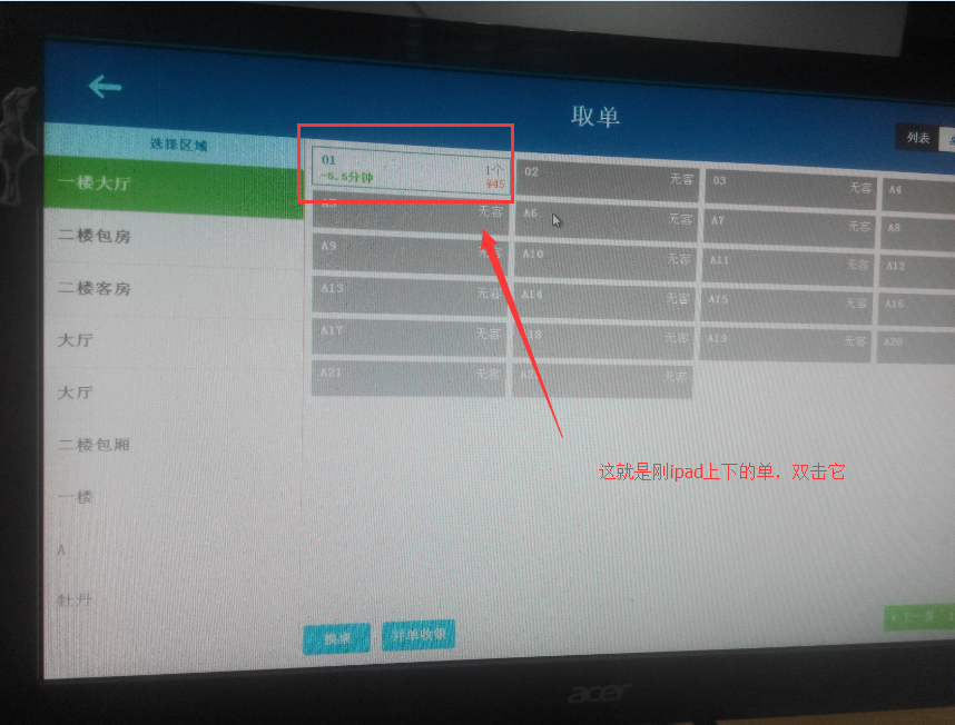 3. 主机上取单,进入收银界面,图5、6和图7: