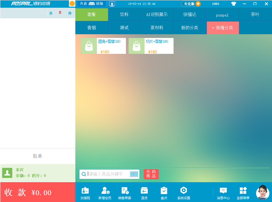 2、如果需要收银的商品,是非 AI 识别商品,直接点击右下角【+】,进入传统收银界面收银